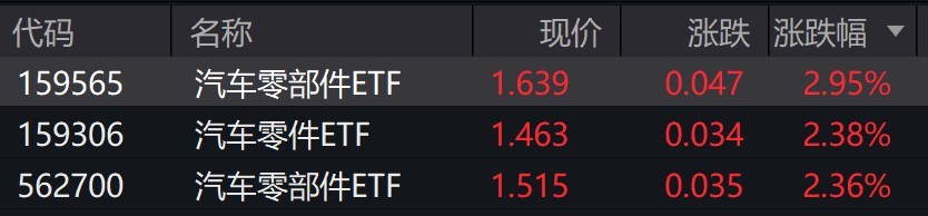 受盤面影響,跟蹤中證汽車零部件主題指數(shù)的ETF漲超2%。