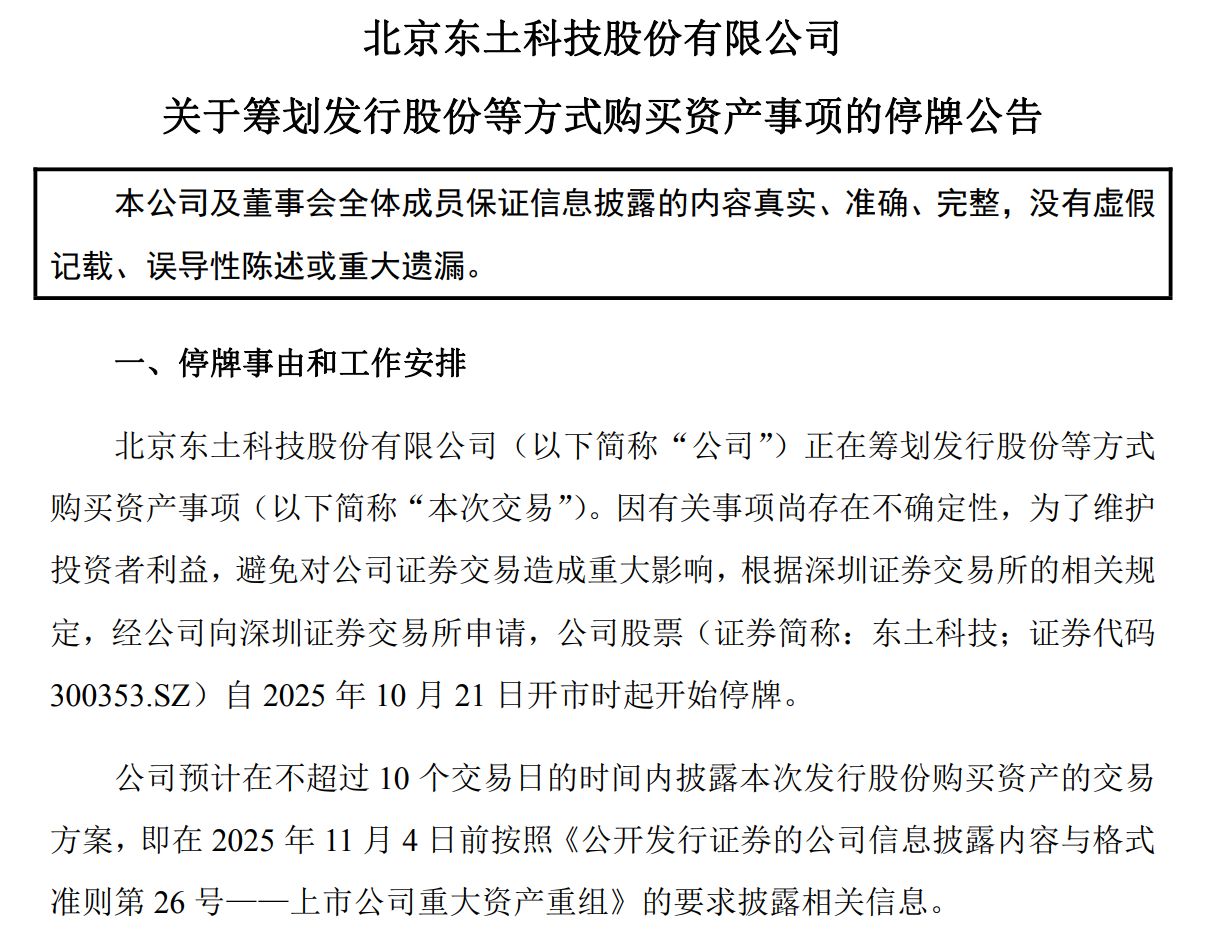 “本次交易對方的范圍尚未最終確定,最終確定的交易對方以后續(xù)公告的重組預(yù)案或重組報告書等上市公司公告披露的信息為準。”東土科技在公告中表示。