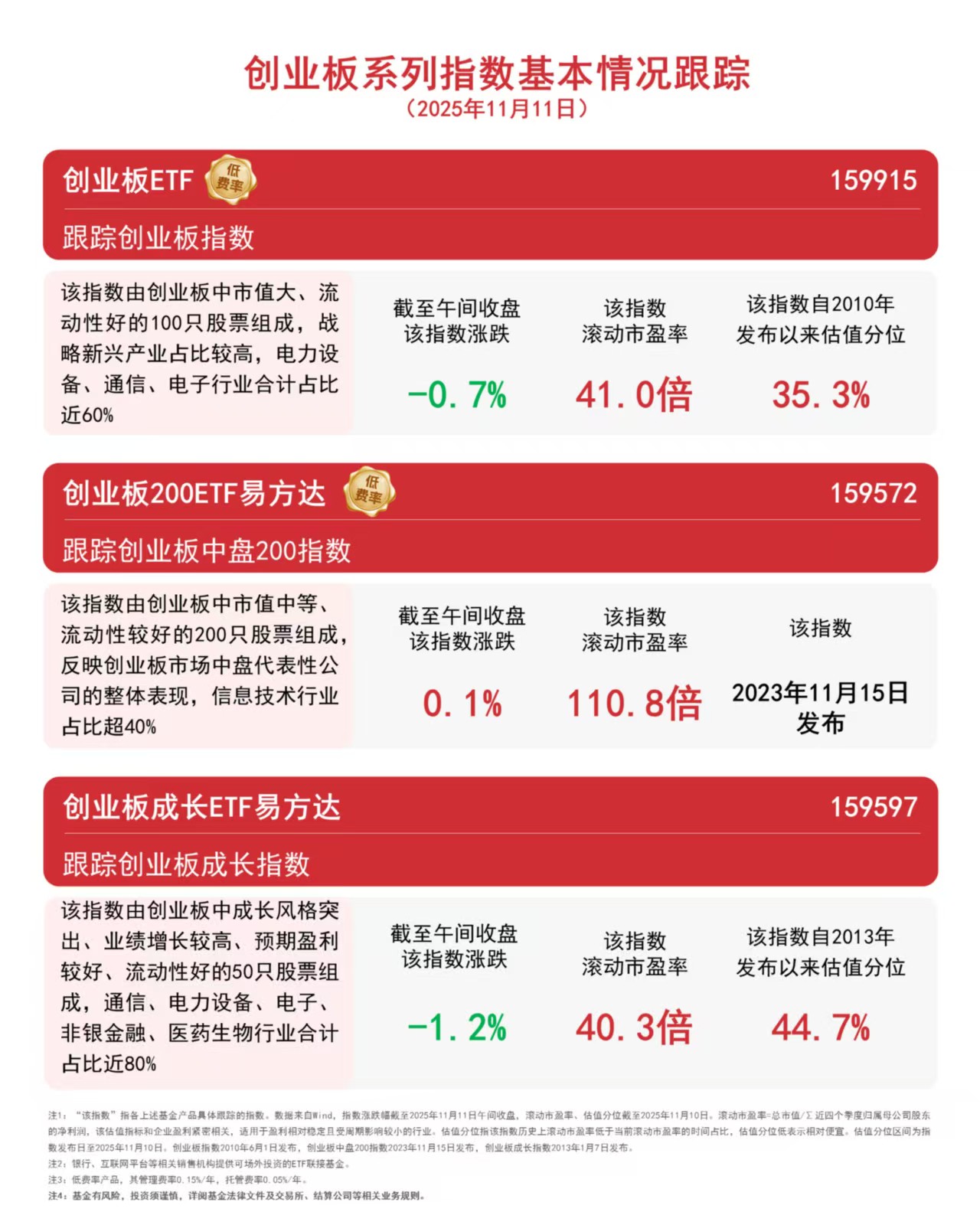 截至午間收盤,創(chuàng)業(yè)板中盤200指數(shù)上漲0.1%,創(chuàng)業(yè)板指數(shù)下跌0.7%,創(chuàng)業(yè)板成長指數(shù)下跌1.2%。Wind數(shù)據(jù)顯示,創(chuàng)業(yè)板ETF(159915)昨日凈流入超9億元。