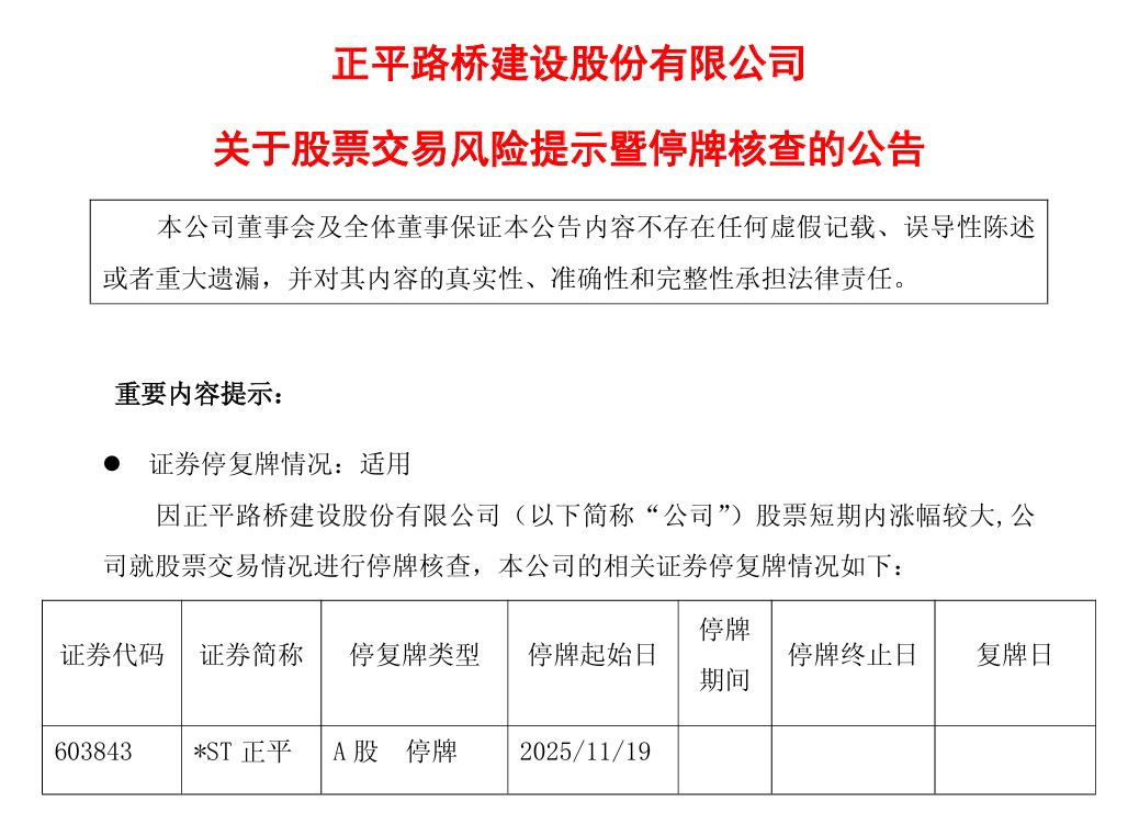 公司股票自2025年11月19日(星期三)開市起停牌核查,自披露核查公告后復(fù)牌,預(yù)計停牌時間不超過10個交易日。