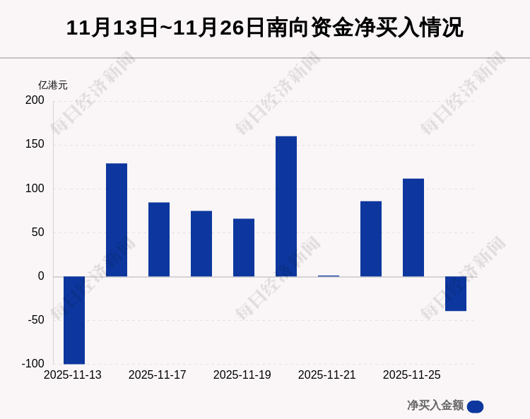每經(jīng)AI快訊,11月26日,恒生指數(shù)上漲0.13%。南向資金今日凈賣(mài)出39.52億港元。